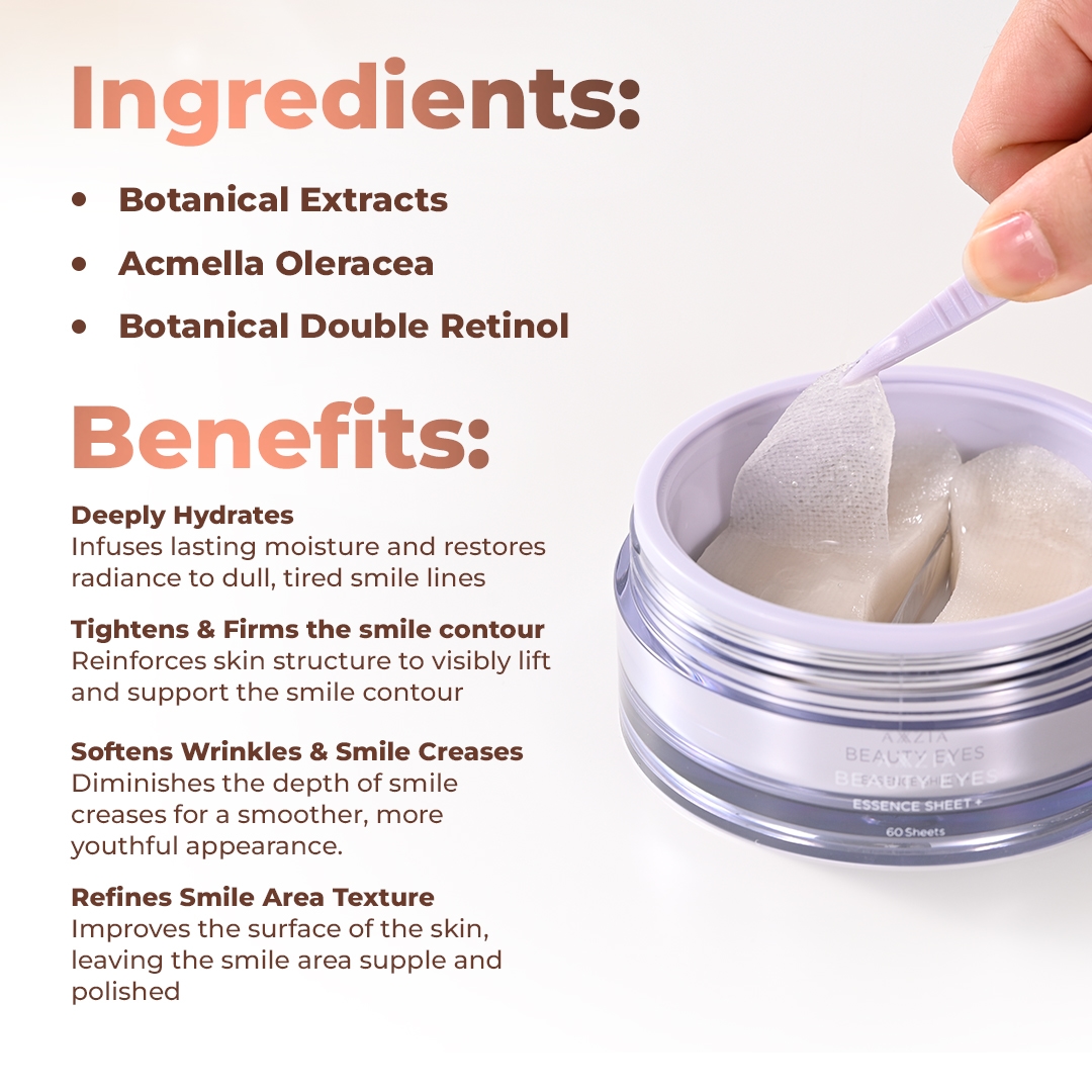 • Firming & Elasticity Boosting – Contains firming and elastic ingredients to help maintain skin firmness in the Smile Line area.